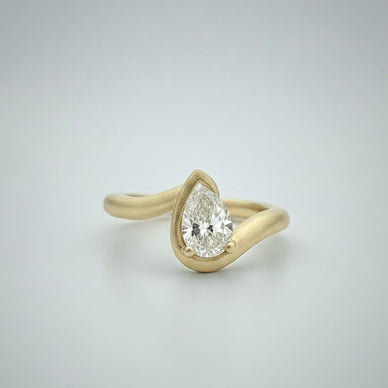 Reference item in photos is 14K solid yellow gold in a matte finish with a white (G) pear cut lab diamond, of approximately 0.40cts, VS1